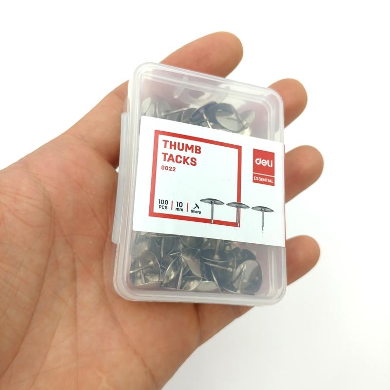 Ghim Mũ Inox Deli 22 Ghim Mũ Inox Deli 22 thường sử dụng để ghim giấy lên bảng nỉ. Kiểu ghim mảnh, nhọn, có mũ tròn giúp cố định giấy tờ chắc chắn. Chất liệu