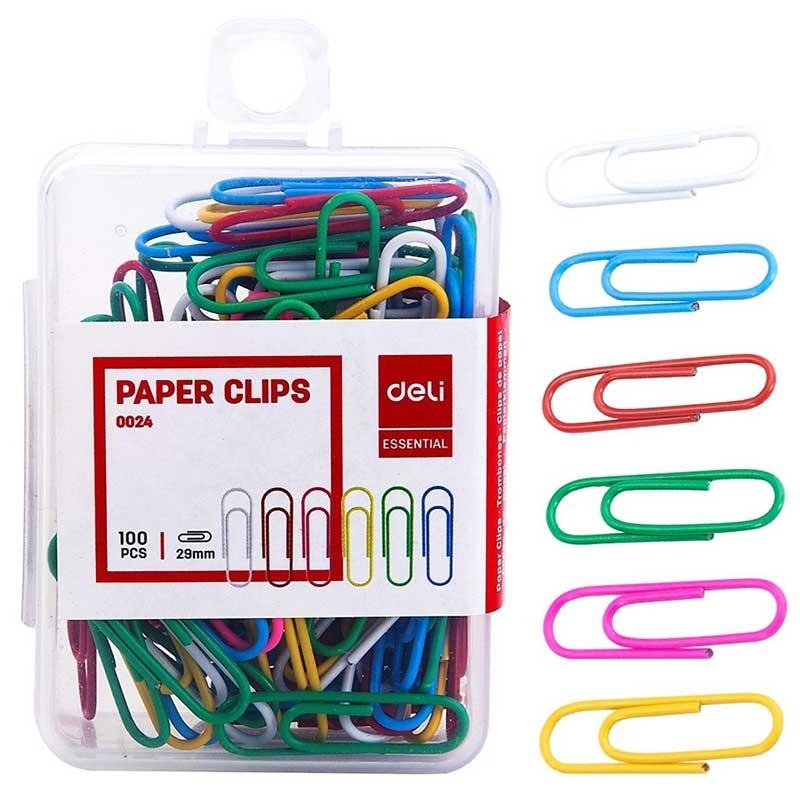 Hộp 100 Ghim Kẹp Tài Liệu Kim Loại Nhiều Màu Deli - Kẹp Giấy Văn Phòng, Học Sinh 29mm || Đặng Ngoan
