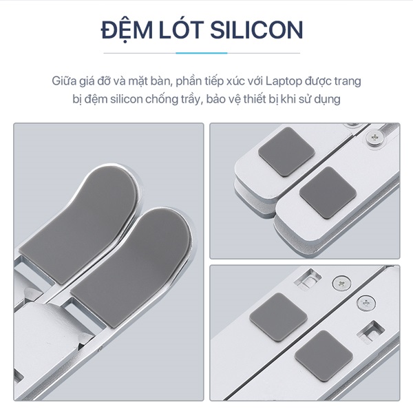 Mô tả sản phẩm - Chất liệu hợp kim nhôm độ bền cao, cứng cáp, chắc chắn - Các đầu tiếp xúc được gắn silicon êm mềm, không gây trầy xước máy - Tương thích