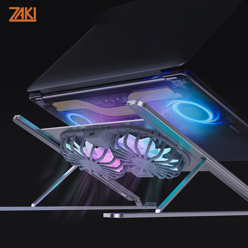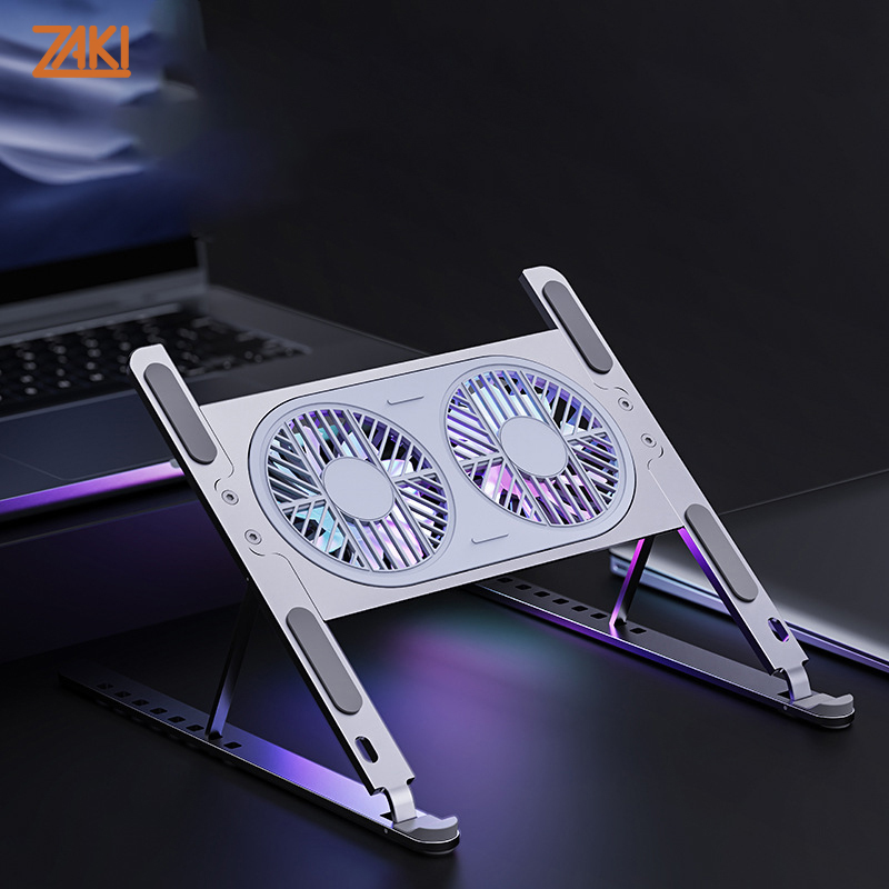 ✨GIÁ ĐỠ DÀNH CHO LAPTOP/MACBOOK/IPAD 11-16 INCH KIÊM ĐẾ TẢN NHIỆT 2 QUẠT LED 7CM ZAKI - P11-F - Hàng Nhập Khẩu