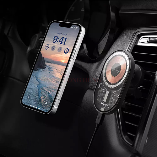 ✨Giá đỡ điện thoại trên xe hơi Philips Magnetic Wirreless Charging Mout 15W DLP9719TB/74 - Hàng chính hãng