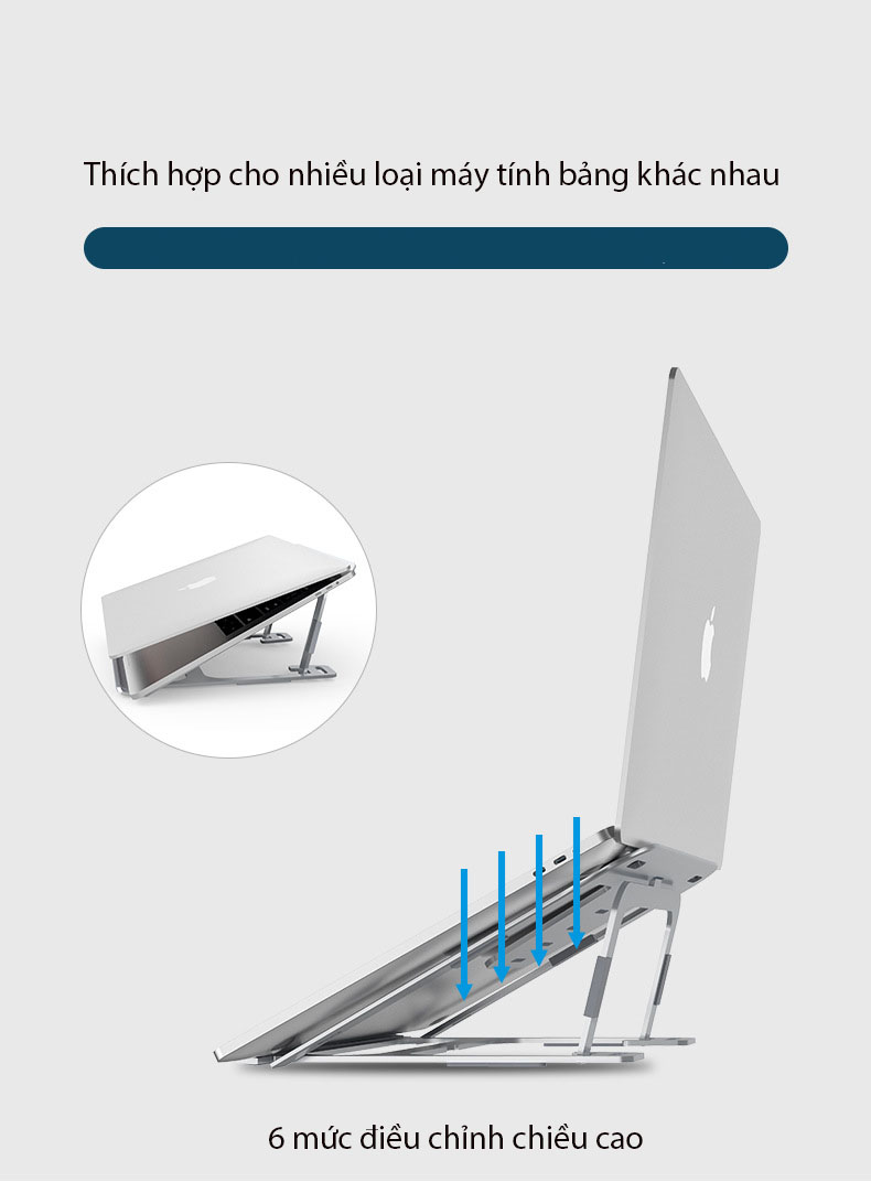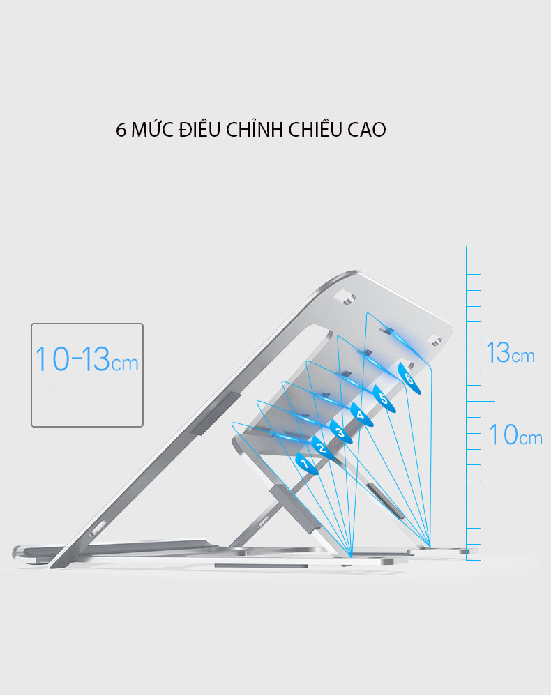 Giá Đỡ Laptop, Máy Tính Bảng Hợp Kim Nhôm 6 Mức Điều Chỉnh Chiều Cao Thông Thoáng Hỗ Trợ Tản Nhiệt