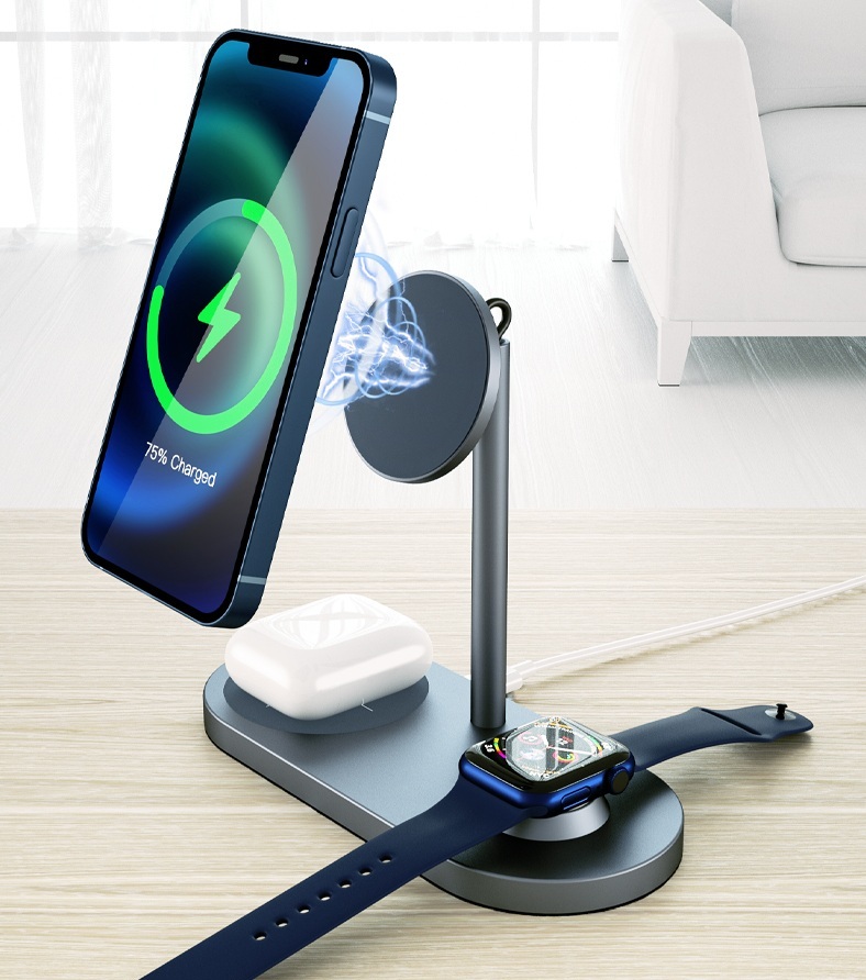 Lực hút nam châm tăng 20% so với các sản phẩm thông thường, giữ chặt thiết bị tương thích ngay cả khi di chuyển. Bạn có thể sạc ba thiết bị cùng lúc với một