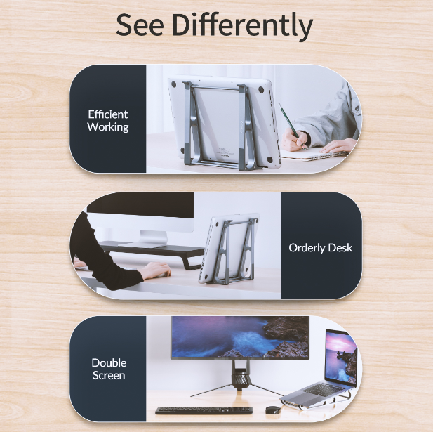 - Giá đỡ giúp nâng cao thiết bị lên một góc nhìn phù hợp, giảm áp lực lên cổ, vai và lưng khi làm việc trong thời gian dài. Điều này đặc biệt hữu ích cho những người làm việc văn phòng hoặc học sinh, sinh viên thường xuyên sử dụng laptop hay iPad.