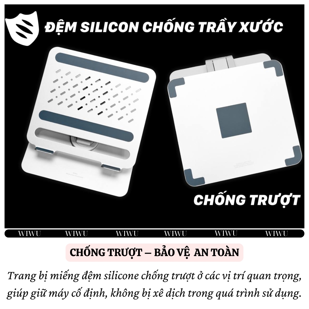 Giá đỡ Laptop Stand WiWu S700 1. Thương hiệu : Wiwu 2. Mô tả sản phẩm - Chất liệu : kim loại - Các chỗ tiếp xúc có đệm silicone chống trầy, chống trượt -
