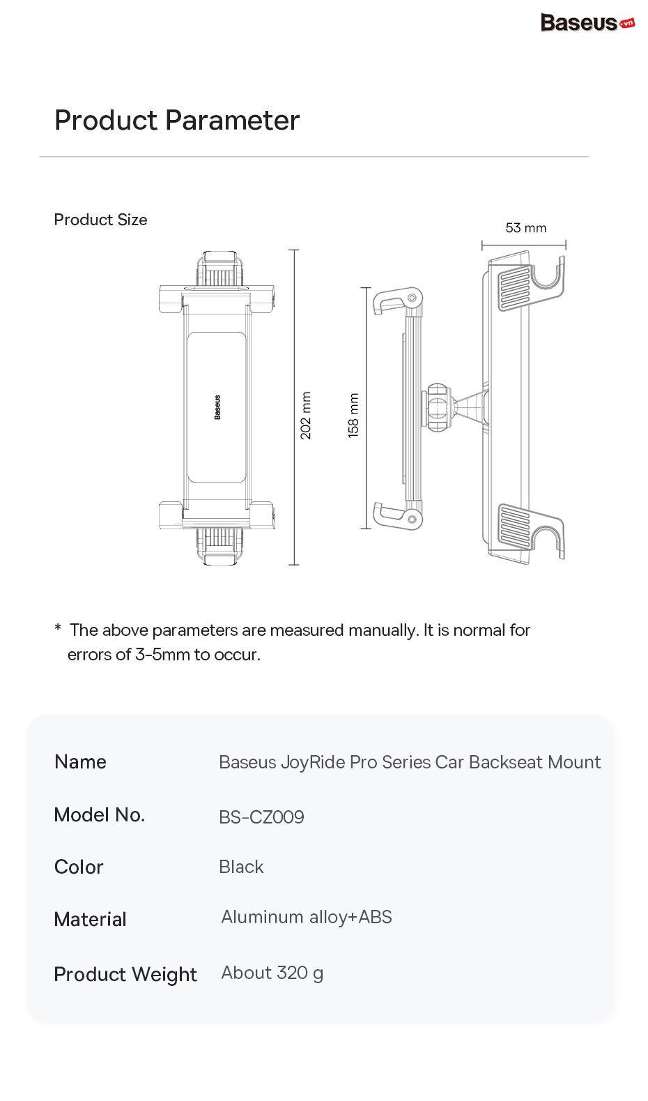 Giới Thiệu Giá kẹp Baseus JoyRide Pro Series Car Backseat Mount Smartphone/I-pad/Tablet dùng gắn lưng ghế sau ô tô - Thương hiệu: Baseus - Chất liệu: Aluminum alloy+ABS - Kích thước: 230*64*99mm - Trọng lượng:
