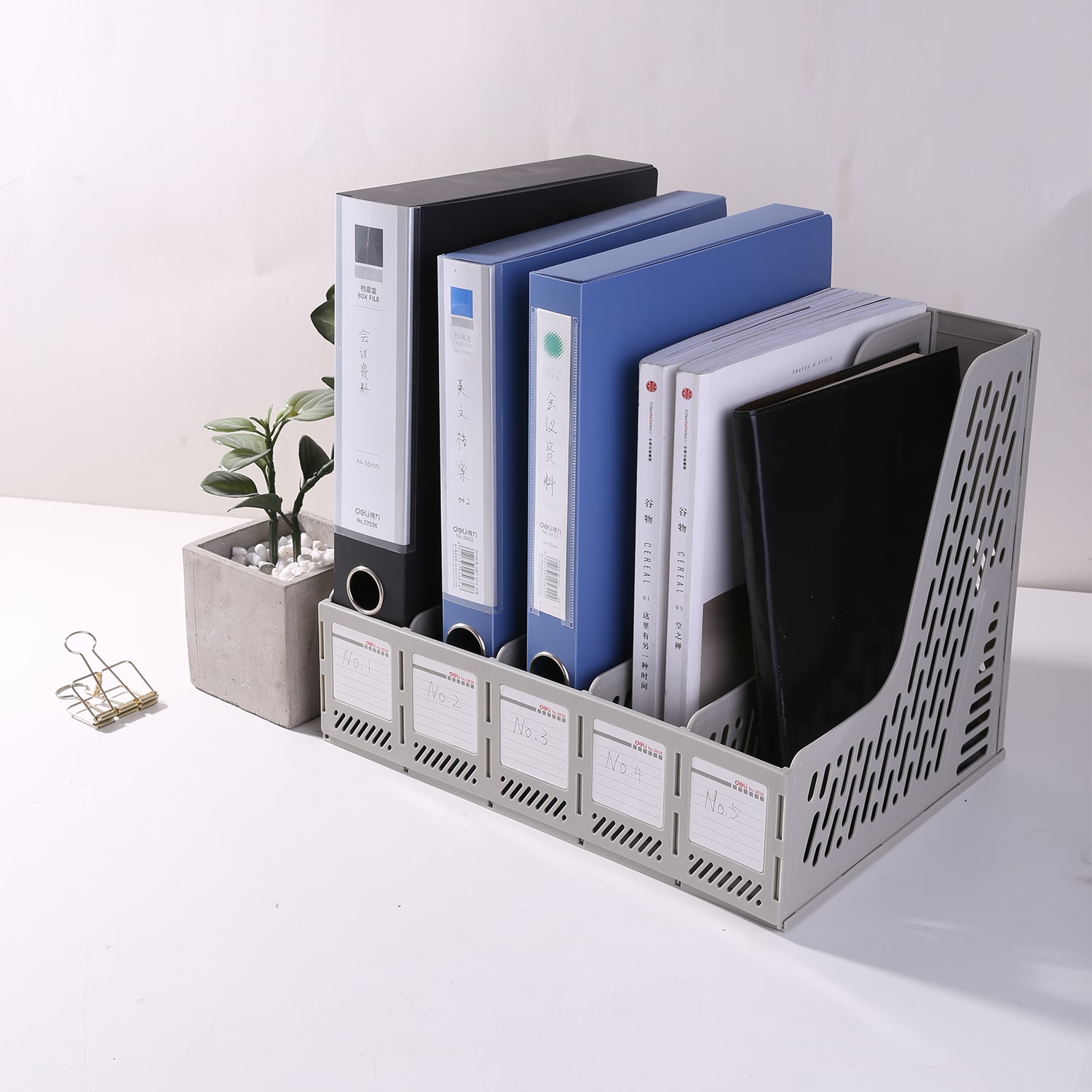 ✨Giá Tài Liệu Deli, 5 Ngăn Đứng Ghi Xám - E9838