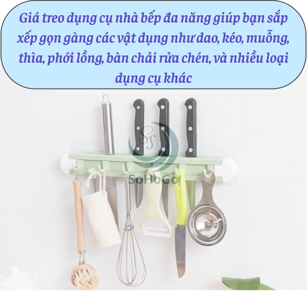 Mô tả chi tiết: Giá treo dụng cụ nhà bếp đa năng giúp bạn sắp xếp gọn gàng các vật dụng như dao, kéo, muỗng, thìa, phới lồng, bàn chải rửa chén, và nhiều loại