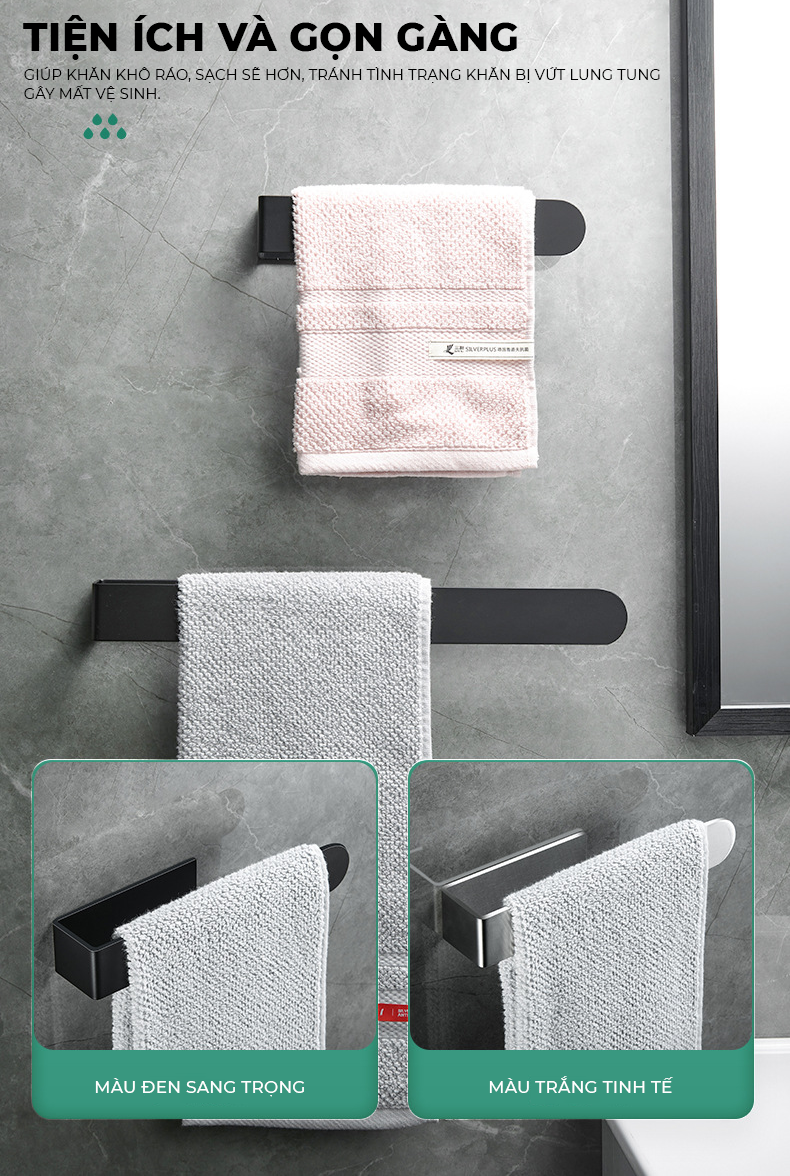 - Công năng: Treo khăn mặt, đồ dùng phòng tắm