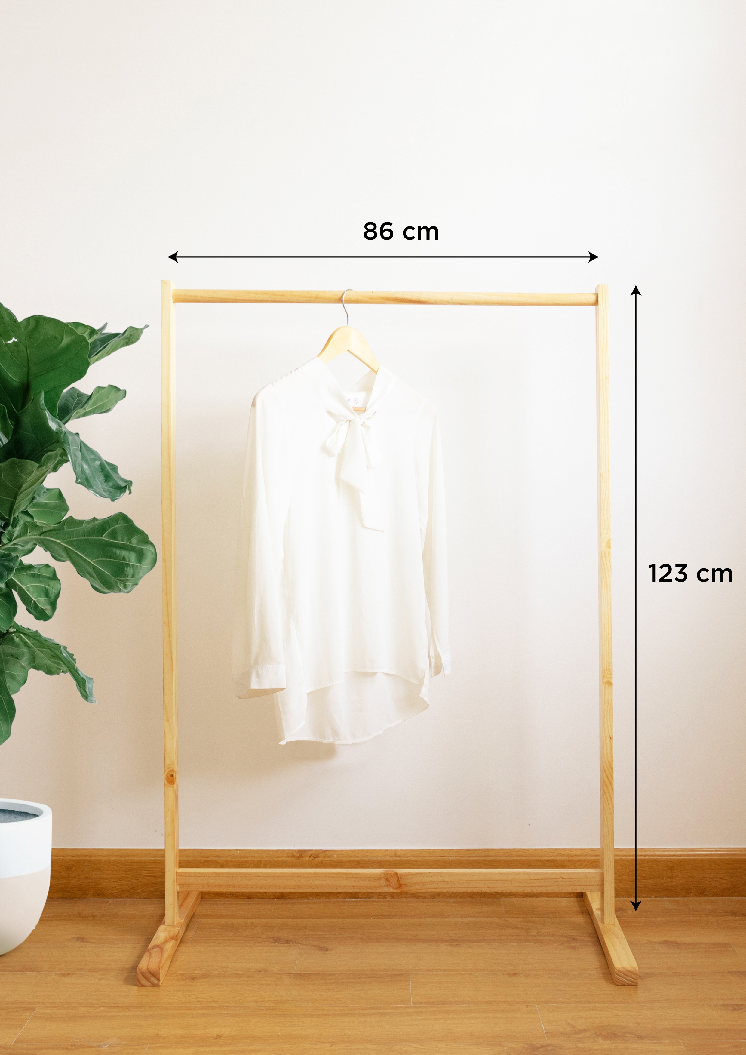 GIÁ TREO QUẦN ÁO THANH ĐƠN - SINGLE HANGER 1. THÔNG TIN SẢN PHẨM: - Kích thước: 86 x 44 x 125 cm (Dài x Rộng x Cao). - Chất liệu: Gỗ thông nhập khẩu