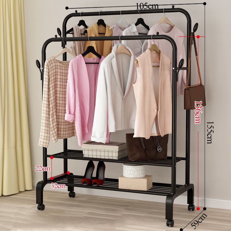 Mua tại TiktokGiá treo quần áo thiết kế thông minh dạng 2 khung 2 tầng để giày kèm móc treo tiện dụng