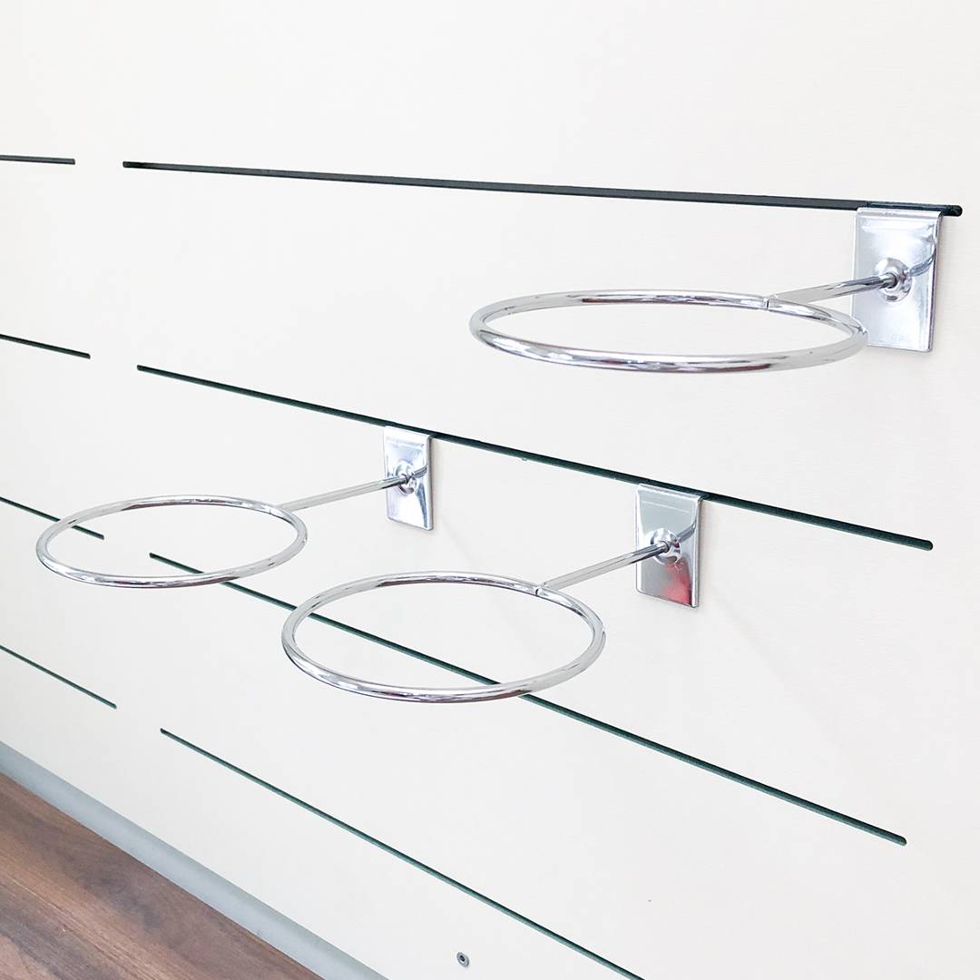Đặc điểm sản phẩm: – Đai tròn đường kính 14cm phù hợp cho hầu hết các loại bóng – Vách lưng phụ kiện Slatwall được thiết kế bản lớn giúp tăng chịu lực sản phẩm – Các góc cạnh được gia công kỹ càng không bị sắc cạnh. Xi mạ Niken sáng bóng.