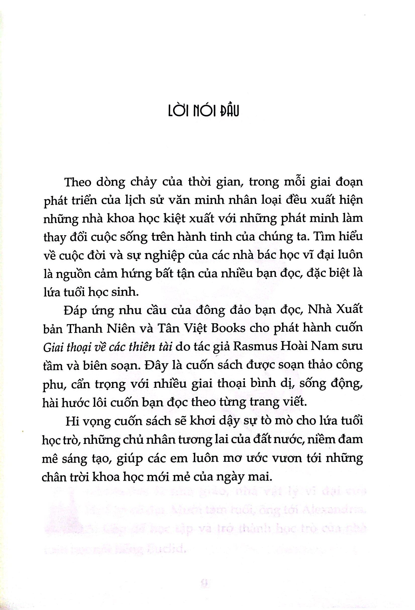 Vậy đó là những nhà khoa học nào? Họ đã đóng góp những nghiên cứu, phát minh nào cho thế giới? Tất cả sẽ được giải đáp trong cuốn sách Giai thoại về các thiên tài - Hành trình khám phá tài năng do tác giả Rasmus Hoài Nam biên soạn.