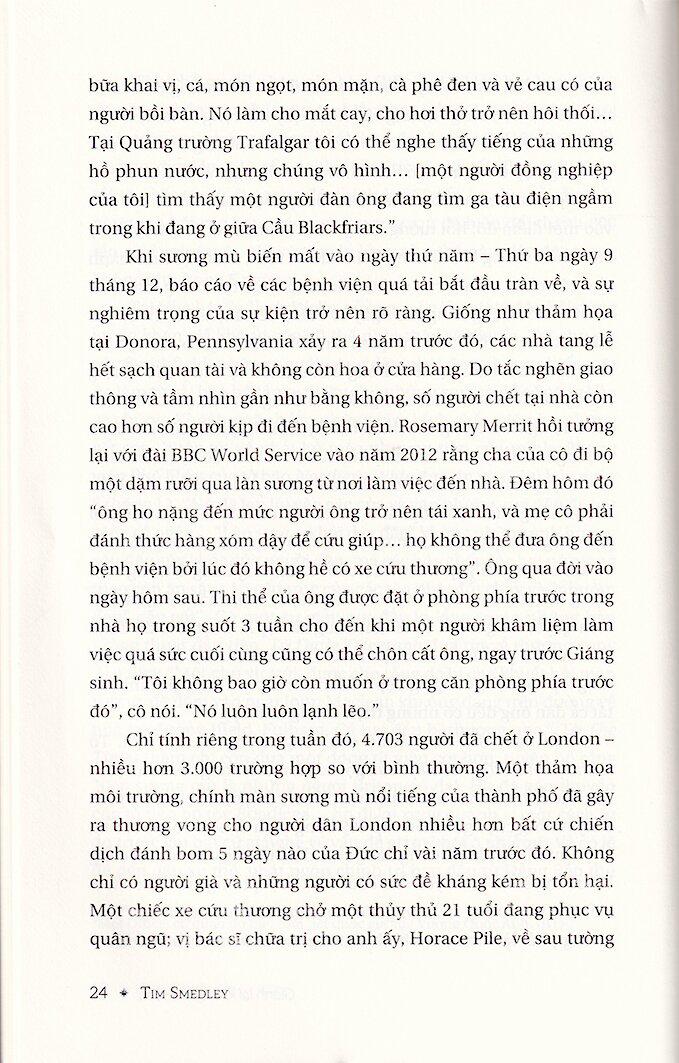 “Một quyển sách tuyệt vời đưa bạn qua những câu chuyện hấp dẫn lẫn đáng sợ về ô nhiễm không khí, đồng thời lý giải hàng tỷ người đã vô tình hít thở không khí độc hại như thế nào. Đây là vấn đề do con người tạo ra. Hãy đọc và hành động!” - James Thornton, CEO của ClientEarth