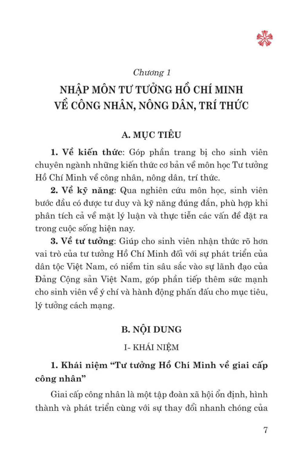 Giáo trình tư tưởng Hồ Chí Minh về công nhân, nông dân, trí thức . Giá bìa: 107.000 Nội dung bao gồm: 1.Chương 1 - Nhập môn tư tưởng Hồ Chí Minh về công nhân,