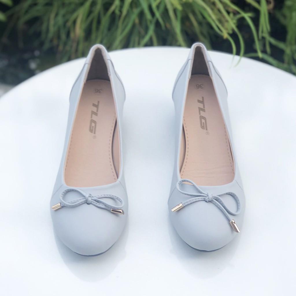 Giày đế xuồng 3cm đính nơ đen Trường Hải da bò thật