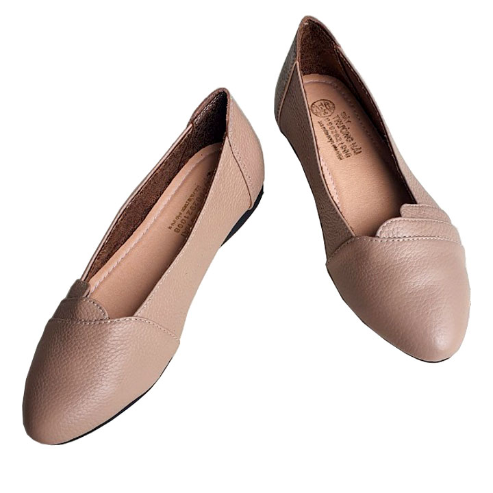 Giày Búp Bê Nữ Da Bò Thật Siêu Mềm Êm Chân VNXK GB01K Kem