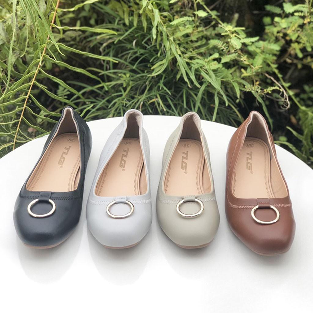 ✨giày búp bê da khóa tròn thời trang phong cách 20760