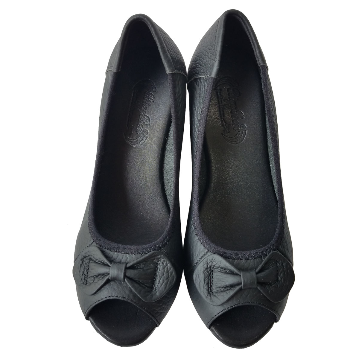 Giày đế xuồng 5cm bigsize hở mũi Trường Hải da bò thật