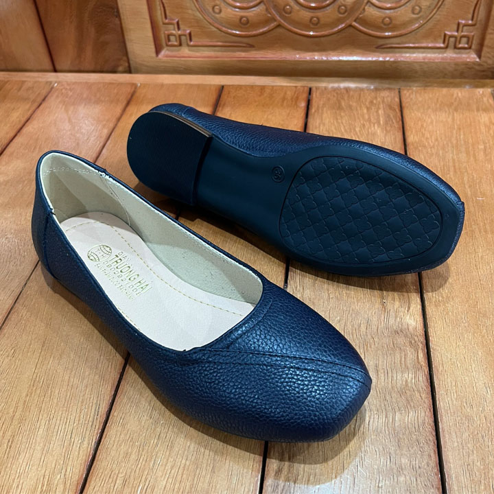 - Tên sản phẩm:Giày búp bê trơn da bò mũi vuông Trường Hải có 2 màu xanh ,đen GBB115