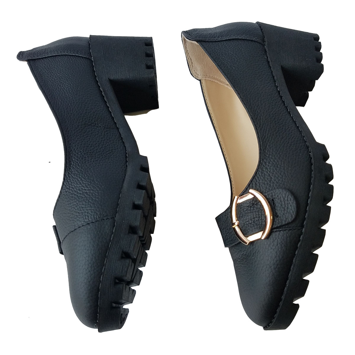Giày cao gót nữ đẹp đế vuông 9 phân hàng hiệu rosata màu đen da ro377 ------------------------------------------------ Mô tả chi tiết: - Thương hiệu: rosata - Mã sản phẩm: ro377 - Kiểu dáng: Giày cao