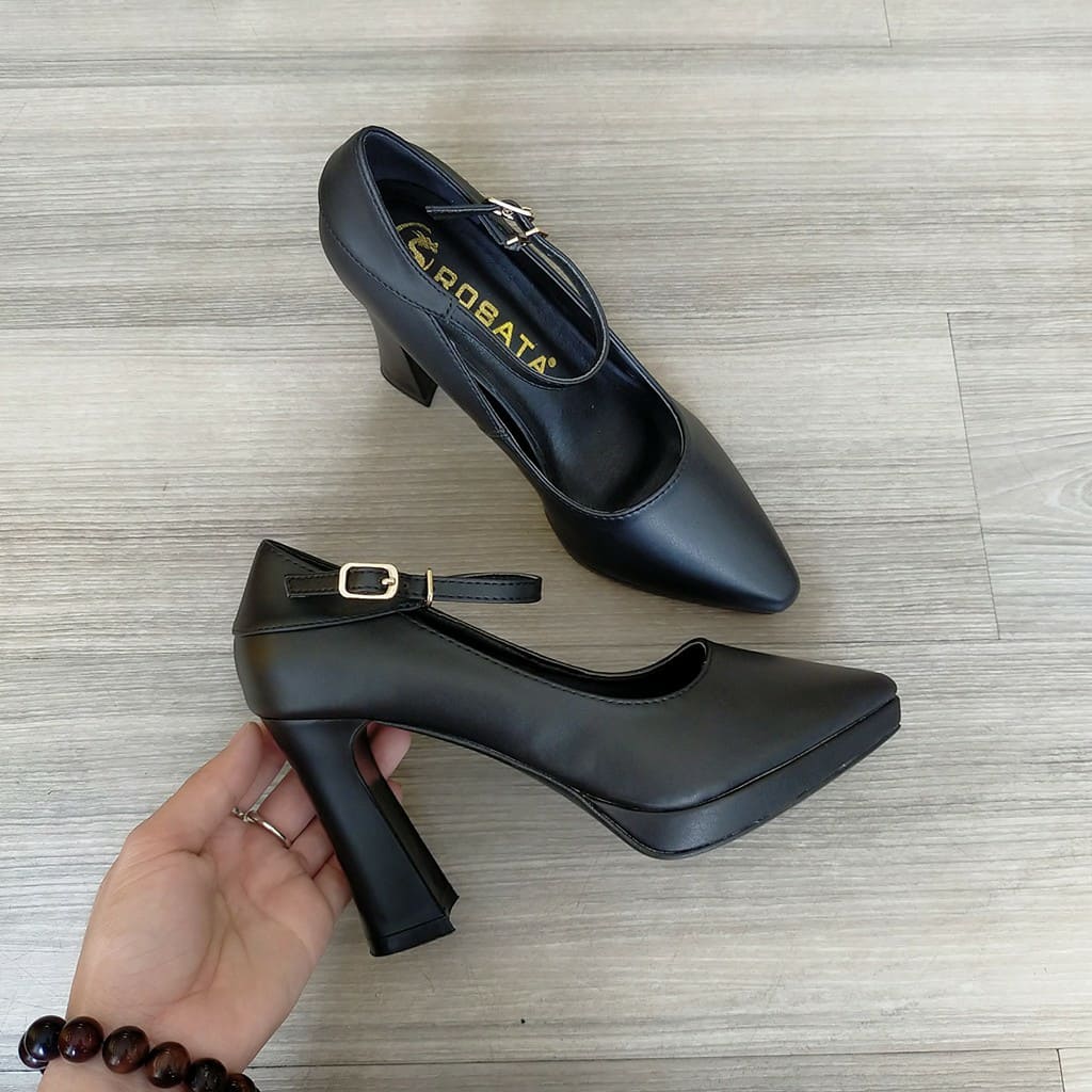 Giày cao gót nữ đẹp đế vuông 8 phân hàng hiệu rosata màu đen ro322