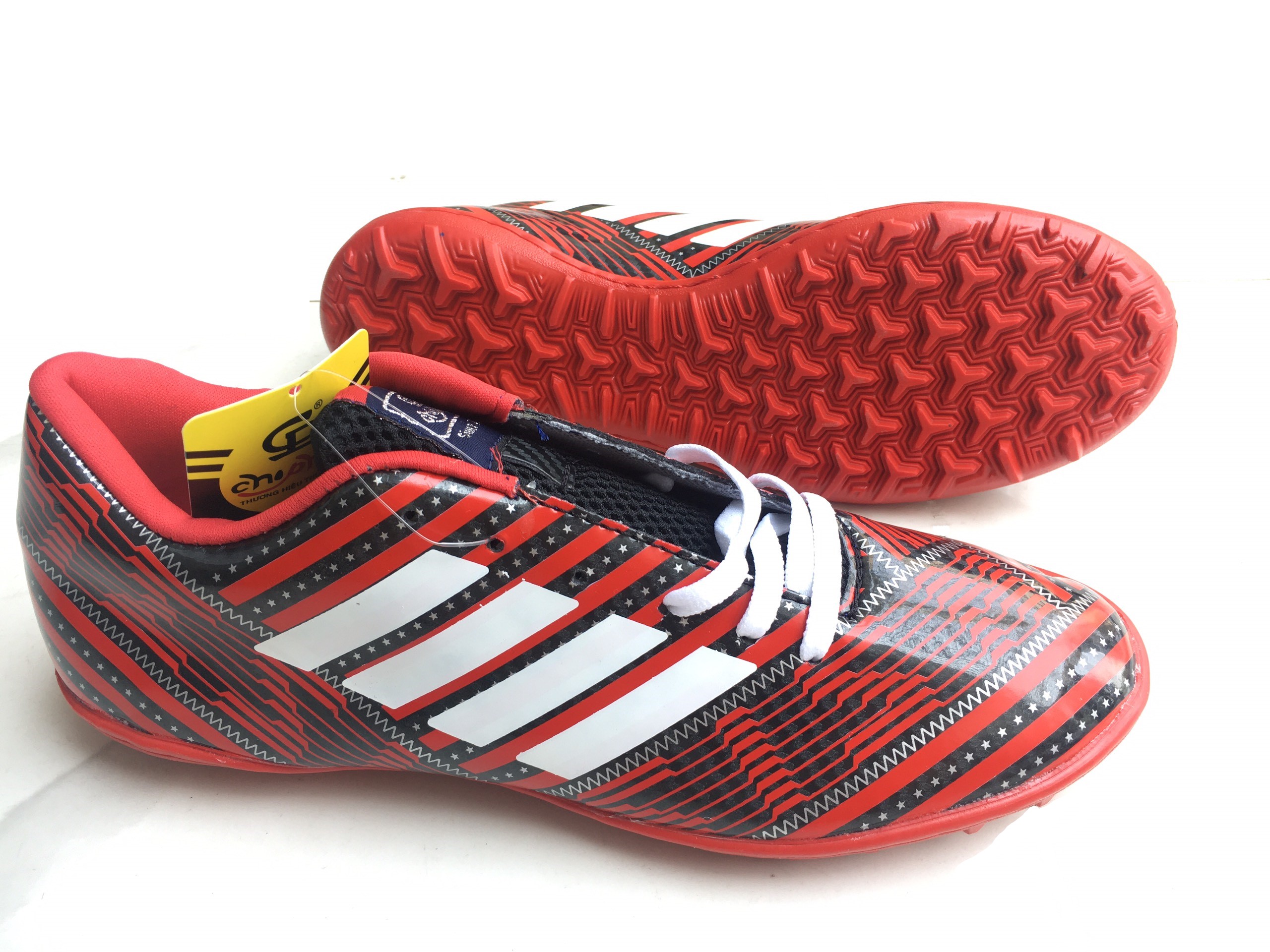 Màu đỏ kết hợp đen độc đáoChất liệu cao su thiên nhiên cùng da nhân tạo cao cấpGiày có độ ma sát nhạyMàu sắc nổi bật, bắt mắtForm giày ôm vừa chân mềm mại, thoải máiGiày Đá Bóng Sân Cỏ Nhân Tạo Chí ...