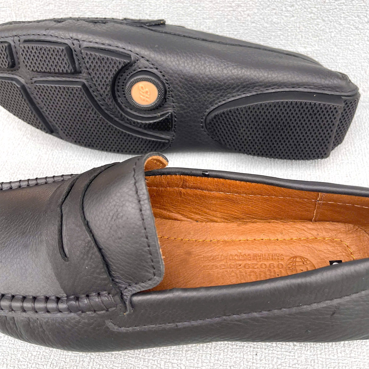 Tên sản phẩm: Giày Lười Nam Trường Hải Đế Âm da bò nguyên tấm 2 màu đen, vàng GL330 Quai giày :được gia công tại nhà nên được làm bằng da bò cao cấp càng