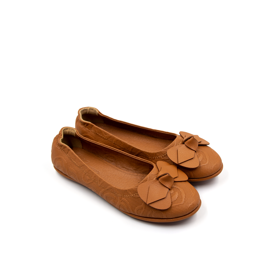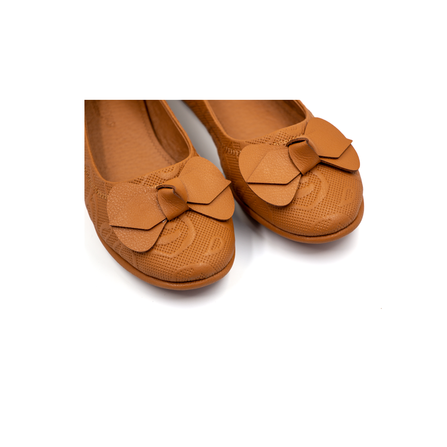 ✨Giày Nữ Búp Bê Đính Nơ Tomoyo Da Micro Fiber Khắc Hoạ Tiết Laser TMW31102