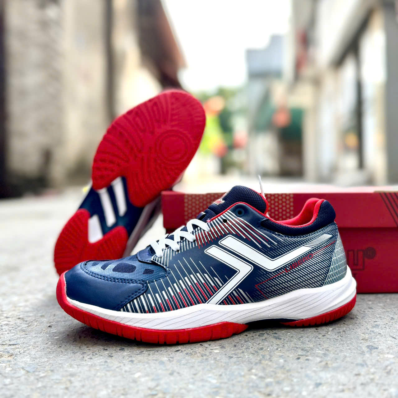 Giày thể thao pickleball Libero chính hãng, êm, thoáng khí và bám sân tốt -Thành phần cấu tạo: +Phần quai được làm từ chất liệu vải lưới và da tổng hợp. -Phần da của giày