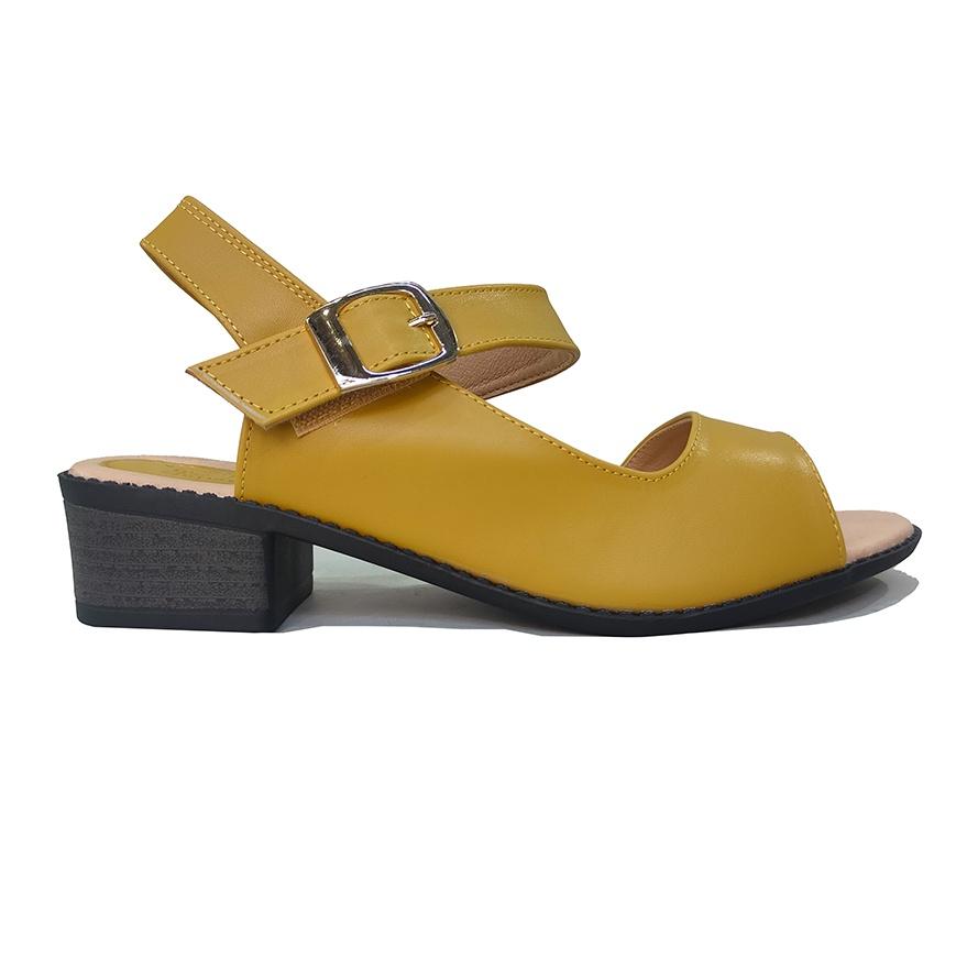 Dép xăng đan nữ đế vuông cao 5cm da bò thật
