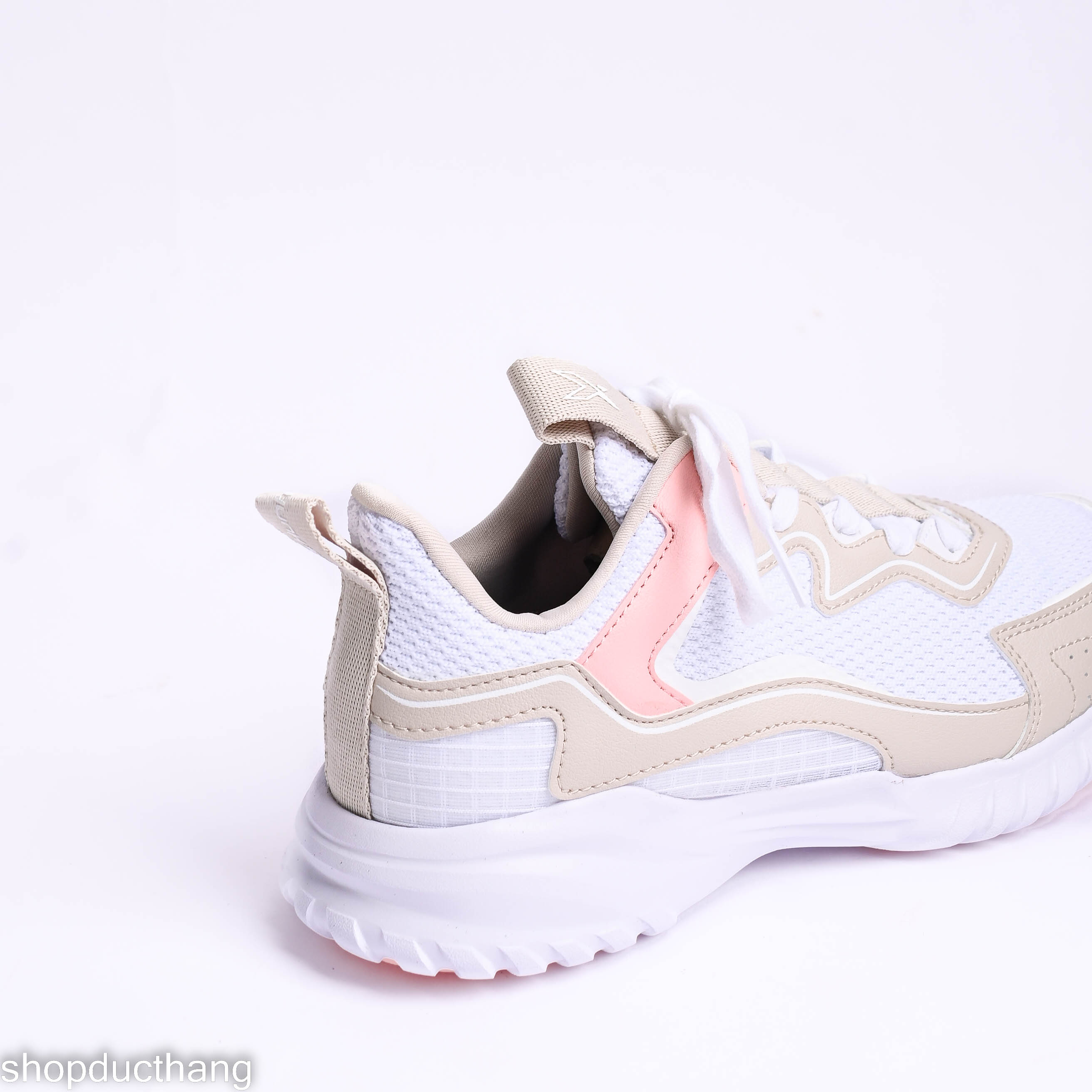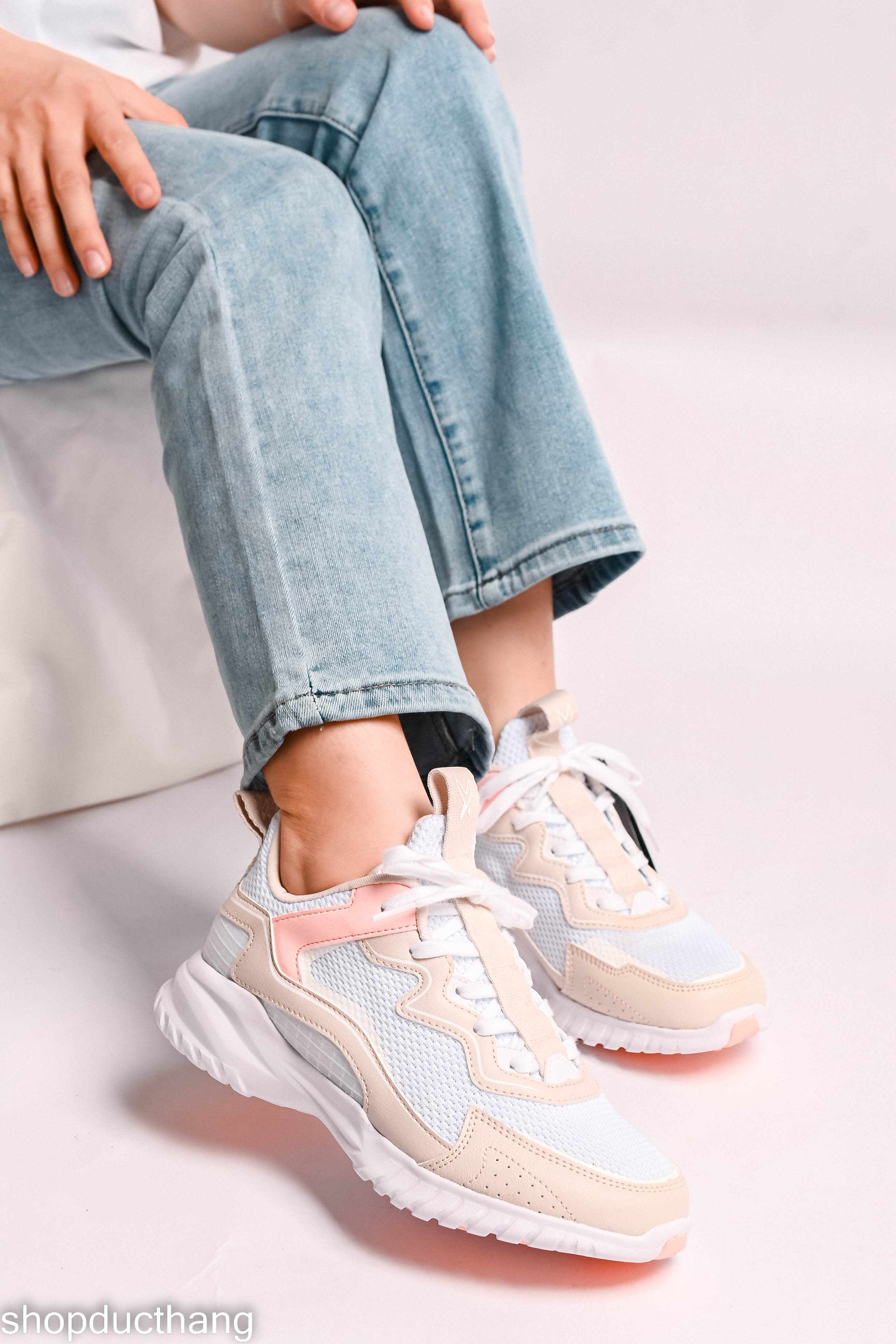 Đế giày - lựa chọn chất liệu Phylon làm nên đế giày thể thao cho các chị em. Vì tính chất nổi bật của vật liệu này là trọng lượng siêu nhẹ (nặng chỉ 300g/chiếc) và độ đàn hồi cao. Nhờ đó, phần lớn khách hàng sử dụng sản phẩm ngay từ lần đầu tiên đều có cảm giác đôi chân “nhẹ như bay”, bước đi thoải mái và thỏa thích vận động ở mọi tư thế theo cách riêng mà không lo đau mỏi chân. - Mặt đế thiết kế thêm những rãnh chống trượt, bố trí dày đặc nhằm tăng độ ma sát. Qua đó giúp người mang vận động thoải mái, bước đi vững chắc và bảo đảm an toàn tối đa, nhất là khi di chuyển trên những địa hình trơn nhẵn hoặc thời tiết ẩm ướt. Thân giày - Thân giày áp dụng công nghệ đan 2 sợi độc đáo. Nhờ vậy, sản phẩm vô cùng nhẹ và thoáng, mang lại cảm giác thoải mái nhất có thể cho người sử dụng. Không những vậy, công nghệ đan 2 sợi còn bảo đảm độ bền chặt của từng chi tiết như cổ giày, quai giày, dây giày… giữ đúng form dáng lâu dài, ít biến dạng hoặc giãn sau một thời gian sử dụng. - Bên cạnh đó, thiết kế thân giày được cải tiến mạnh mẽ bằng chất liệu vải canva, bảo đảm cảm giác thoải mái nhất có thể và hạn chế nóng bức, bí bách nếu phải mang giày trong thời gian dài. -