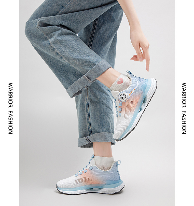 Đế giày - lựa chọn chất liệu Phylon làm nên đế giày thể thao cho các chị em. Vì tính chất nổi bật của vật liệu này là trọng lượng siêu nhẹ (nặng chỉ 300g/chiếc) và độ đàn hồi cao. Nhờ đó, phần lớn khách hàng sử dụng sản phẩm ngay từ lần đầu tiên đều có cảm giác đôi chân “nhẹ như bay”, bước đi thoải mái và thỏa thích vận động ở mọi tư thế theo cách riêng mà không lo đau mỏi chân. - Mặt đế thiết kế thêm những rãnh chống trượt, bố trí dày đặc nhằm tăng độ ma sát. Qua đó giúp người mang vận động thoải mái, bước đi vững chắc và bảo đảm an toàn tối đa, nhất là khi di chuyển trên những địa hình trơn nhẵn hoặc thời tiết ẩm ướt. Thân giày - Thân giày áp dụng công nghệ đan 2 sợi độc đáo. Nhờ vậy, sản phẩm vô cùng nhẹ và thoáng, mang lại cảm giác thoải mái nhất có thể cho người sử dụng. Không những vậy, công nghệ đan 2 sợi còn bảo đảm độ bền chặt của từng chi tiết như cổ giày, quai giày, dây giày… giữ đúng form dáng lâu dài, ít biến dạng hoặc giãn sau một thời gian sử dụng. - Bên cạnh đó, thiết kế thân giày được cải tiến mạnh mẽ bằng chất liệu vải canva, bảo đảm cảm giác thoải mái nhất có thể và hạn chế nóng bức, bí bách nếu phải mang giày trong thời gian dài. -