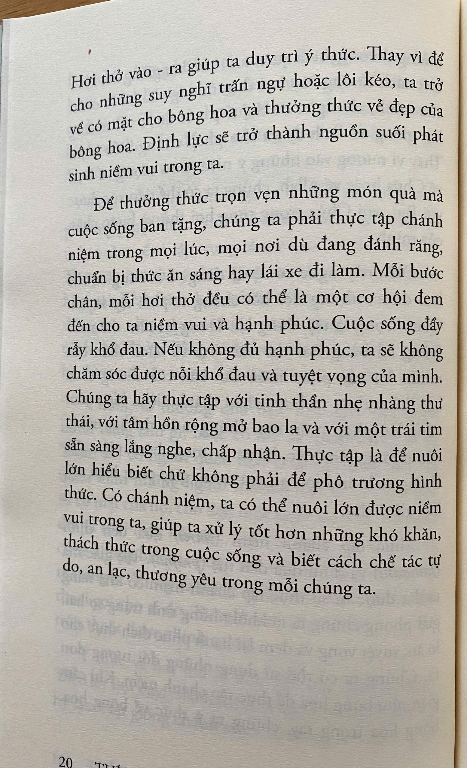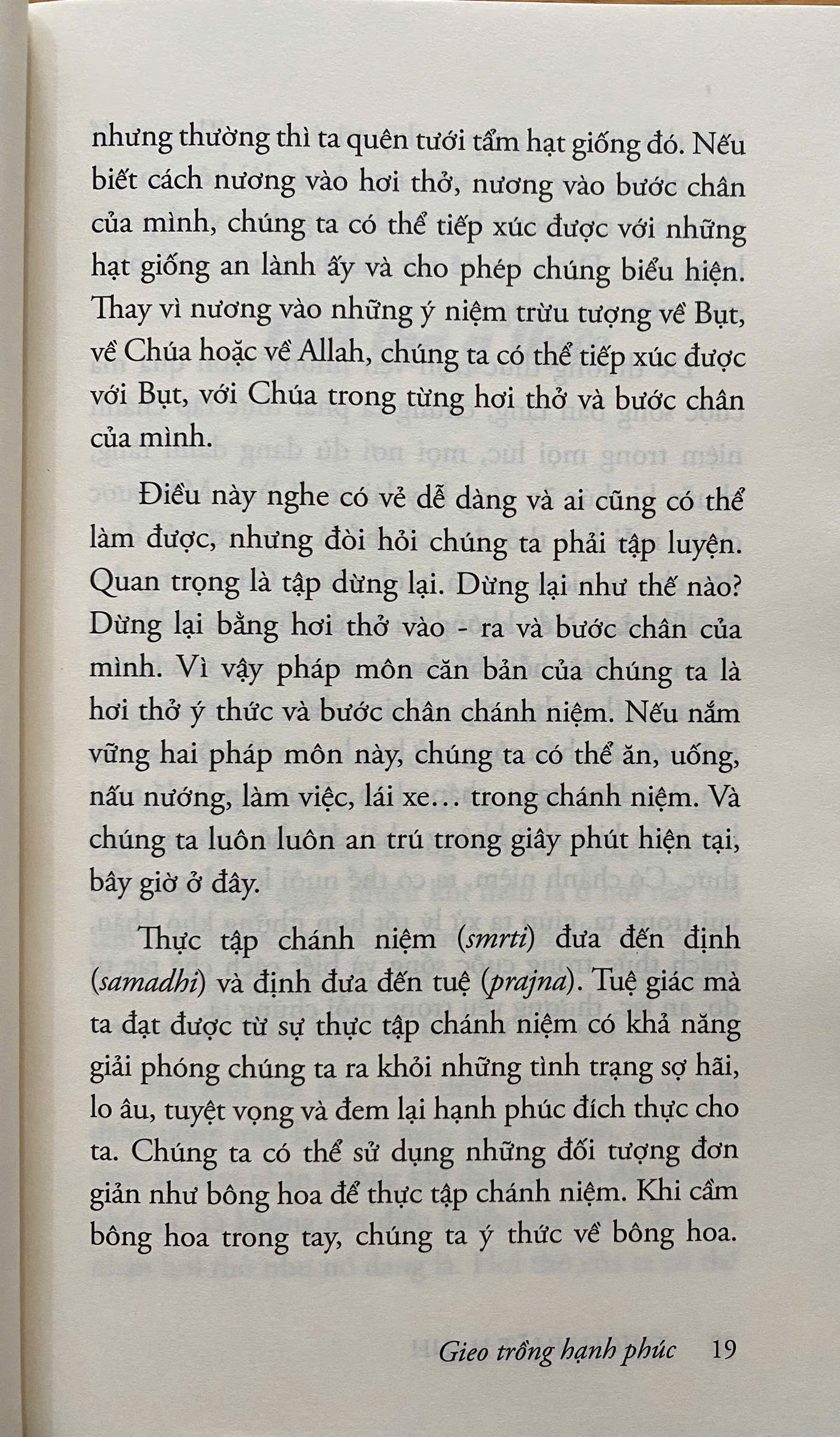 Gieo trồng hạnh phúc không chỉ mang đến những ý niệm tươi mới về bản thân mỗi người mà còn giúp mỗi người trân trọng và lắng nghe hơi thở của mình, thúc đẩy họ vượt qua, rũ bỏ những ham muốn tiêu cực khỏi đời sống vốn đòi hỏi lòng từ bi, nhắc nhở con người quay về sống với tình yêu thương.
