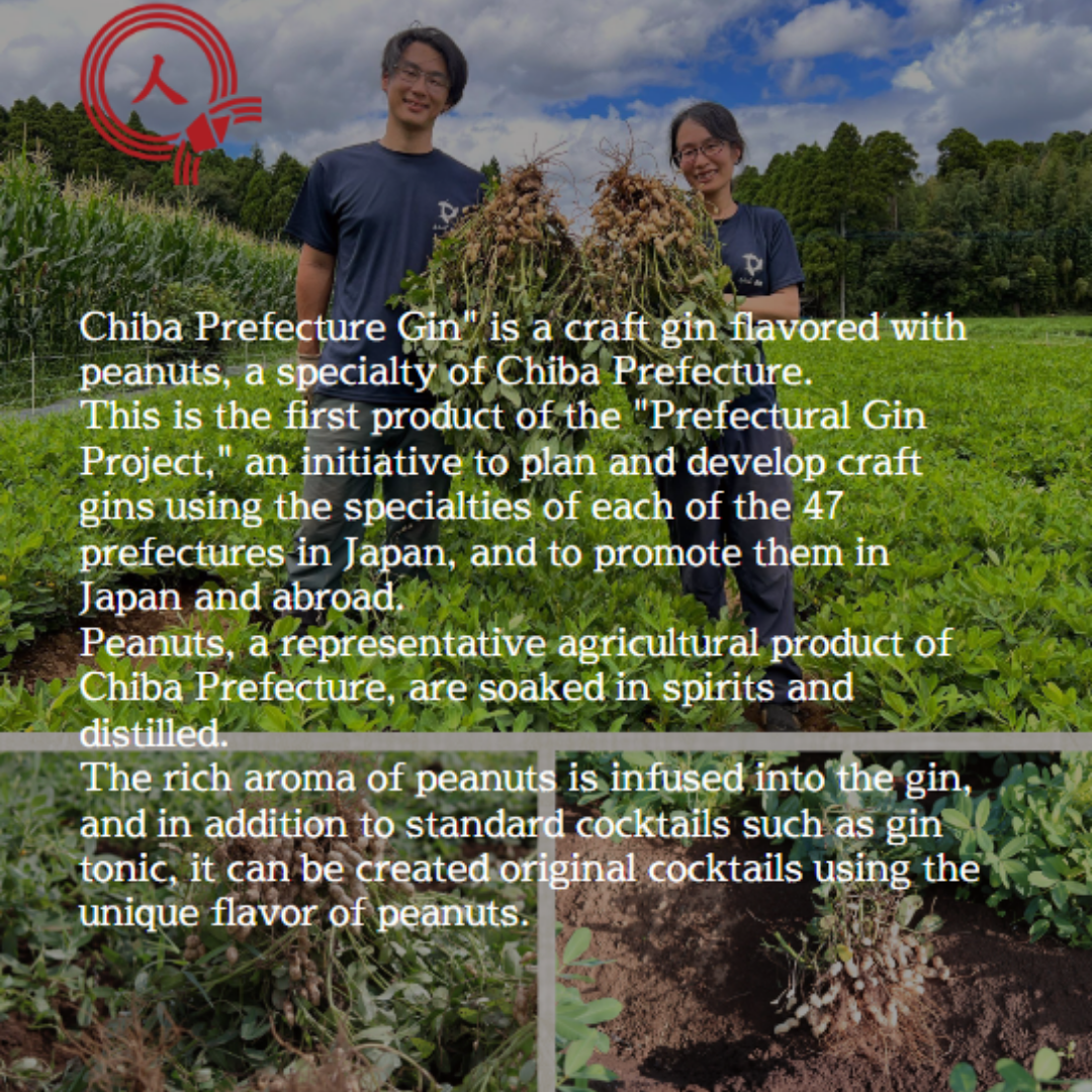 Loại r'ượu Gin thủ công đặc biệt được sản xuất với cảm hứng và ý nghĩa từ sản phẩm nông nghiệp tiêu biểu của Tỉnh Chiba - Đậu phộng. Sau khi được chọn lọc kĩ lưỡng, đậu phộng được ngâm r'ượu và chưng cất cho ra mẻ r'ượu Gin thủ công lên đến 40% nồng độ cồn. Hương thơm đậm đà của đậu phộng được lan tỏa vào r'ượu Gin. Ngoài các loại cocktail tiêu chuẩn như r'ượu gin tonic, người ta có thể tạo ra những loại cocktail nguyên bản với hương vị độc đáo của đậu phộng.