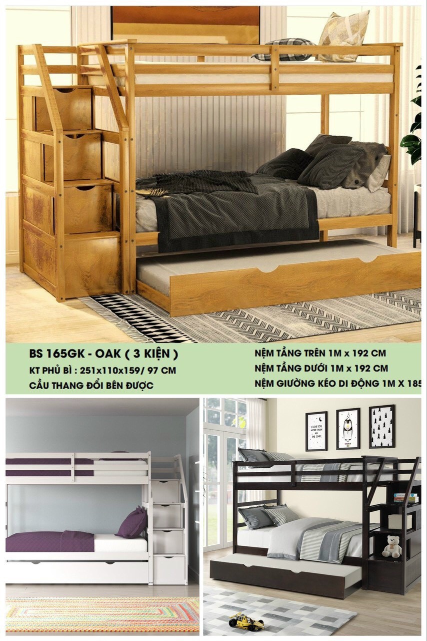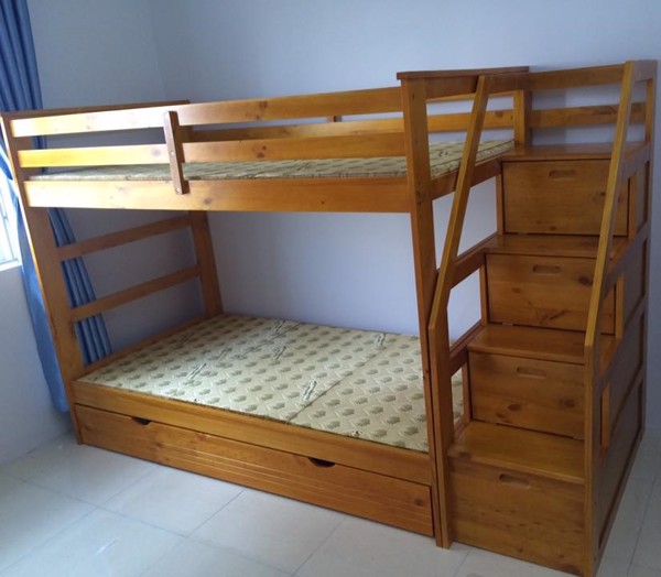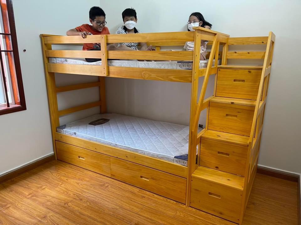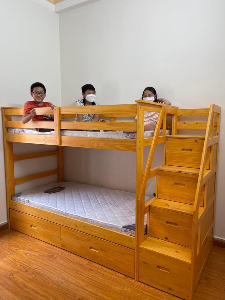 Số tầng: gồm 3 tầng giường và 3 ngăn tủ cầu thang chứa đồ tiện lợi