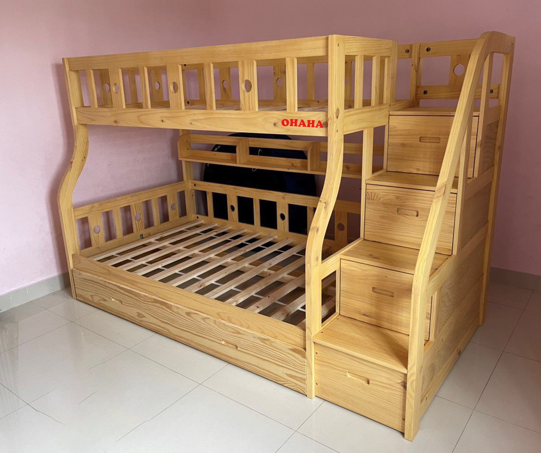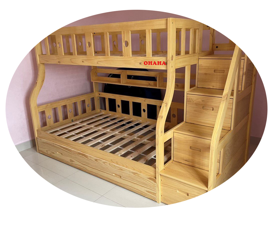 ✨Giường tầng cao cấp Big Sun OHAHA - Màu gỗ thông tự nhiên - 001