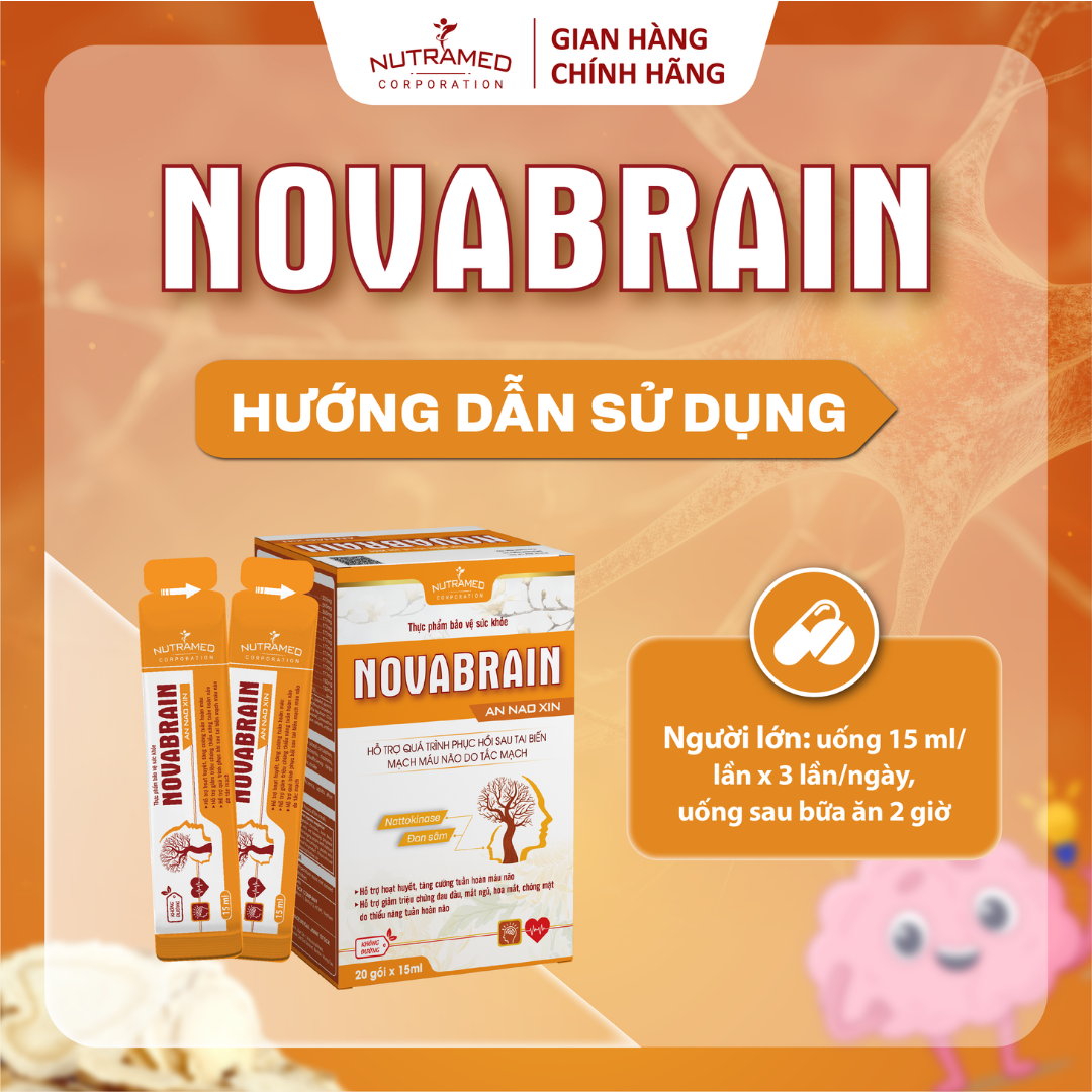 ✨Gói uống Novabrain hỗ trợ ngăn ngừa và phục hồi tai biến mạch máu não do tắc mạch (20 gói) - Nutramed