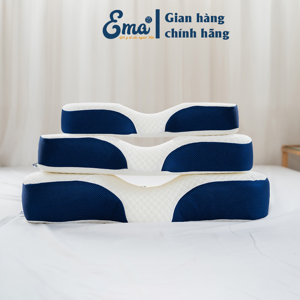 - Kích thước phù hợp với vóc dáng người Việt Nam với chiều cao vừa phải CÔNG DỤNG CỦA GỐI CÔNG THÁI HỌC EMA Giảm đau nhức, giảm cứng vùng cổ, vai, gáy với những người thường xuyên phải cúi nhiều, người cao tuổi, người bị thoái hóa đốt sống cổ đặc biệt với những người thích nằm nghiêng Phòng và điều trị bệnh thoái hóa đốt sống cổ Hỗ trợ ngủ nhanh, giúp dễ đi vào giấc ngủ hơn GỐI CÔNG THÁI HỌC EMA GIẢM ĐAU MỎI CỔ VAI GÁY & HỖ TRỢ NGỦ NHANH NHƯ THẾ NÀO? Được thiết kế theo công thái học cấu tạo xương - cột sống của con người, gối công thái học Ema ra đời nhằm giúp người sử dụng luôn luôn giữ thẳng đốt sống cổ trong quá trình ngủ, dù bạn nằm ngửa hay nằm nghiêng. Khi nằm ngửa: Với chiều cao 2 đầu lần lượt là 12cm và 5cm cùng thiết kế rỗng ở giữa đỉnh đầu giúp cho người nằm giữ tư thế hơi ngửa cổ lên trên -> tư thế giúp giữ thằng đốt sống cổ. Tư thế này giúp đốt sống cố ở trạng thái tự nhiên nhất, không chịu lực ép giúp giảm đau mỏi vùng cổ, vai, gáy sau một ngày dài làm việc vất vả. Thiết kế hình cánh bướm cũng giúp ôm trọn 2 bên mặt tạo cảm giác nâng niu, an toàn khi ngủ Khi nằm nghiêng: Chiều cao hai mặt bên là 12cm giúp nâng đỡ toàn bộ đầu, vai được thả lỏng không chịu áp lực và tạo tư thế song song với cổ. Lúc này đốt sống cổ cũng được giữ thằng giúp người sử dụng có thể nằm nghiêng lâu hơn mà không sợ mỏi cổ, vai,gáy Với việc có được sự thoái mái khi nằm ở bất kể tư thế nào tạo cho người sử dụng cảm giác thoải mái khi sử dụng sản phẩm. Giấc ngủ sẽ đến nhanh hơn và sâu hơn khi cổ vai gáy không phải chịu áp lực mỏi khiến bạn trở mình thường xuyên. Thiết kế riêng biệt cho 2 tư thế nằm ngửa và nằm nghiêng chỉ có ở gối công thái học Ema. Các loại gối công thái học khác chỉ tập trung vào trải nghiệm nằm ngửa của người sử dụng mà quên mất tư thế nằm nghiêng. Đây là điểm khác biệt mà gối công thái học Ema tự tin có thể làm hài lòng những khách hàng khó tính nhất. THÔNG SỐ CHI TIẾT SẢN PHẨM Tên sản phẩm: Gối công thái học Ema Mã sản phẩm: EMA-EG1 Ruột gối: Được làm từ Cao su non - với khả năng chậm đàn hồi và độ bền lên đến 10 năm, là một trong những chất liệu tốt nhất để làm gối ngủ - cùng với cao su thiên nhiên. Memory Foam (cao su non) với đặc tính chậm đàn hồi là vật liệu do trung tâm vũ trụ NASA phát minh vào năm 1966 nhằm nâng cao sự an toàn cho các phần nệm của thiết bị bay nhằm giảm thiểu tối đa áp lực tác động lên các phi hành gia và rung chấn trong quá trình phóng tàu vũ trụ. Ngày này chất liệu này được sử dụng rất nhiều trong ngành công nghiệp gối - đệm Vỏ gối: Được làm từ vải sinh học Tencel phối với vải 3D thoáng khí. Có khóa kéo ẩn giúp dễ dàng thay giặt vệ sinh nhưng không ảnh hưởng đến thẩm mỹ của gối Kích thước: Rộng 67cm dài 35 cm cao 5-12cm phù hợp với thể trạng người Việt Nam. Chiều rộng 67cm lớn hơn tất cả các loại gối tiêu chuẩn giúp đảm bảo độ rộng rãi để người sử dụng thoải mái khi nằm nghiêng. Chiều cao phần cao nhất 12 cm phù hợp với cấu tạo đốt sống cổ của đa số người trường thành, phần thấp nhất 5cm (có thể điều chỉnh) giúp người sử dụng đảm bảo tư thế nằm thư giãn thoải mái nhất. Màu sắc : Gối được phối 2 màu xanh - trắng trang nhã với màu trắng làm từ vải sinh học Tencel còn phần màu xanh được làm từ vỏ 3D siêu thoáng mát