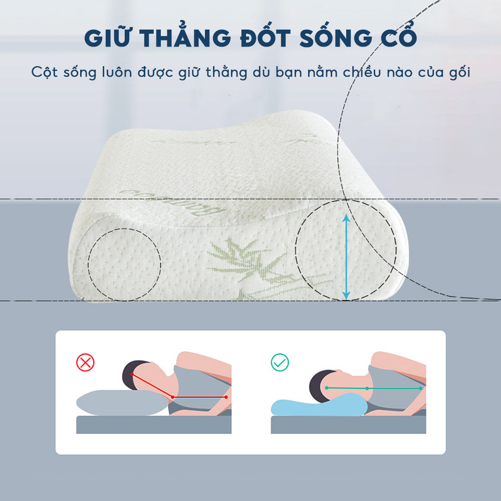 Gối thư giãn cổ được thiết kế có đường lõm ở giữa, giúp cố định và nâng đỡ đầu vai gáy đúng tư thế giúp người dùng cảm thấy thoải mái và dễ chịu khi