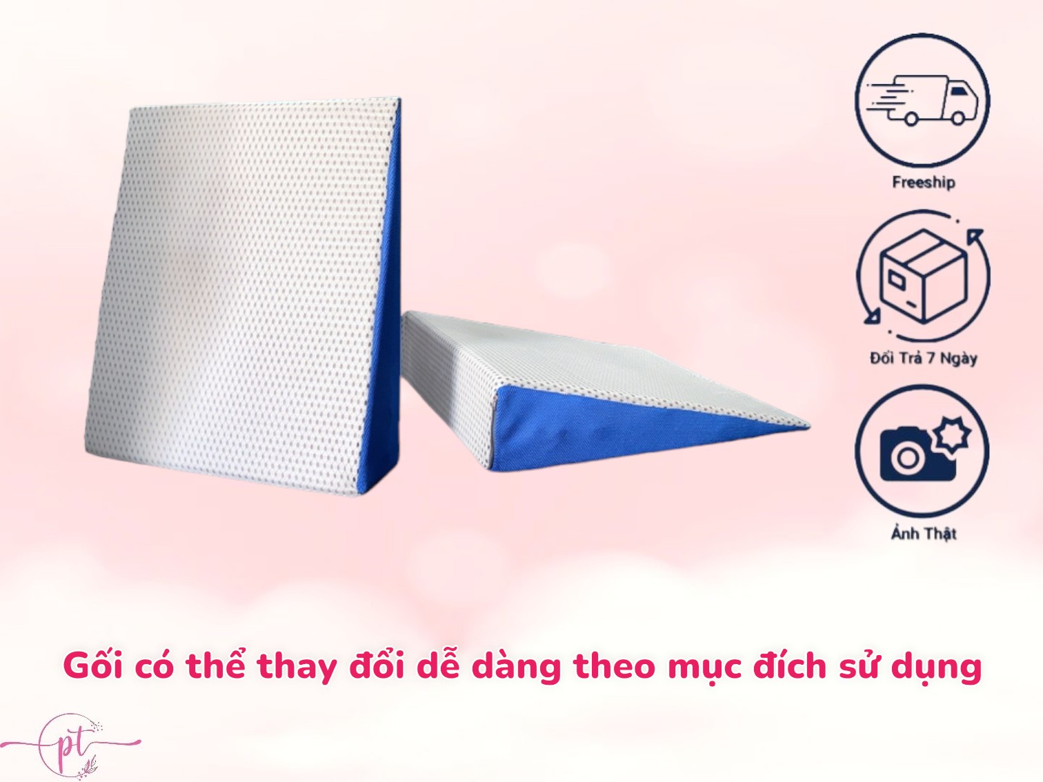 CHẤT LIỆU CAO CẤP Loại 1: Dài 70cm Rộng 60cm Cao 22cm, góc nghiêng 17,5 độ. Dùng cho người bị SUY GIẢM NHIỀU chất lượng cuộc sống do thường xuyên (trên 3 lần/tuần) gặp