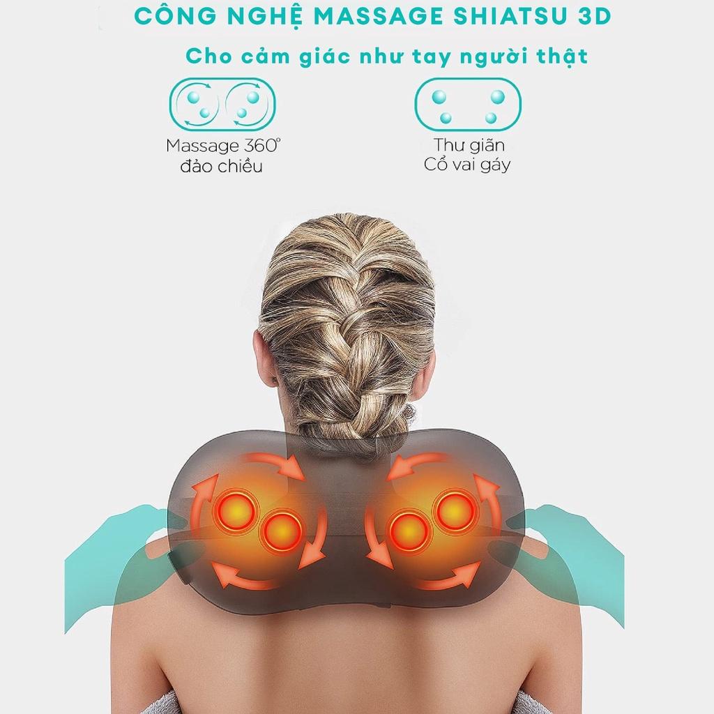 Gối Massage hồng ngoại đa năng - Sử dụng được cho toàn bộ cơ thể – cổ, vai, gáy, lưng trên, lưng dưới, cẳng chân và bàn chân - Thiết kế khoa học tăng thêm