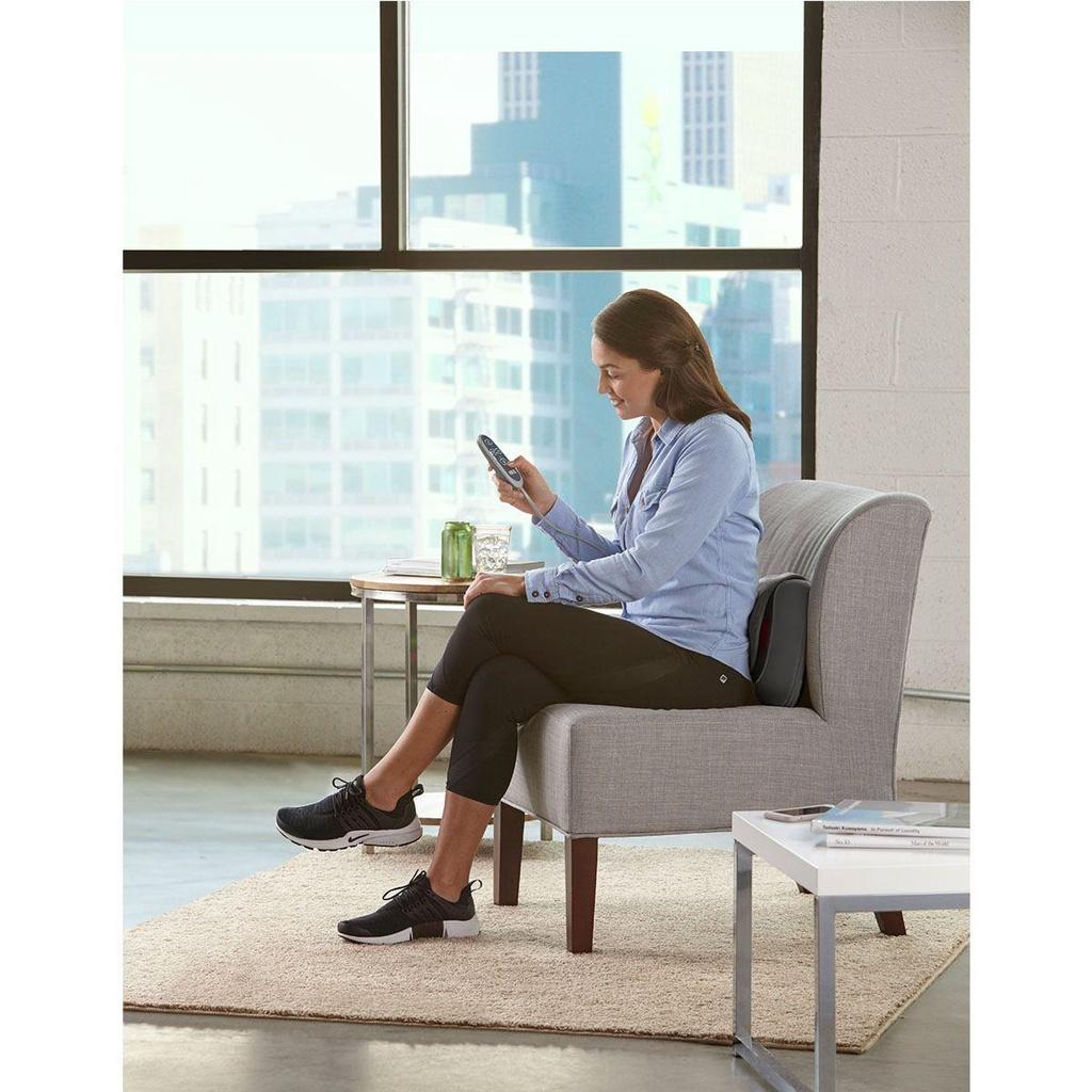 Gối massage HoMedics SP-100H-GB sử dụng công nghệ massage 3D Shiatsu xoa bóp hình tròn và rung động kèm nhiệt giúp nới lỏng và thư giãn các cơ bắp bị đau và căng cứng một