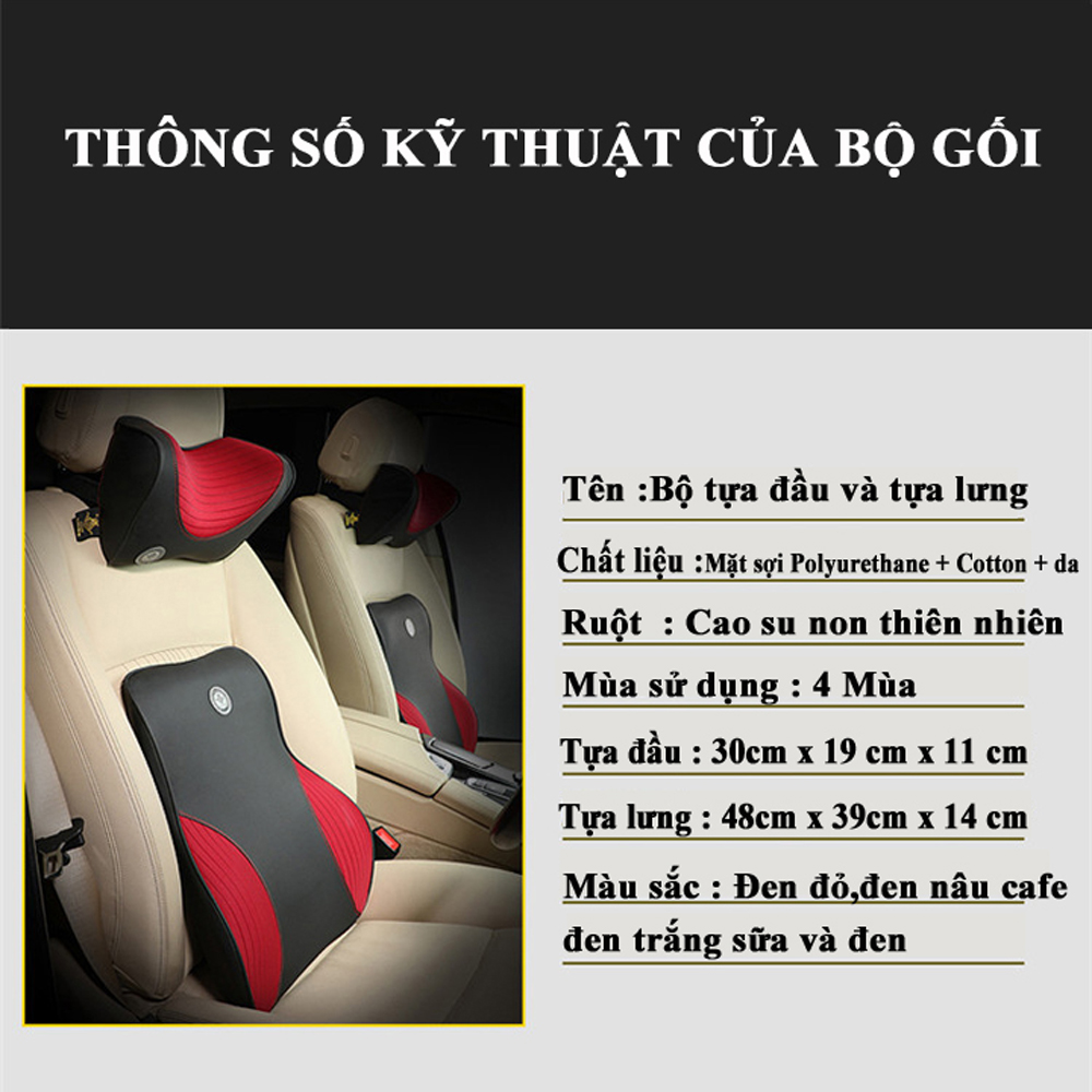 ✨Gối tựa đầu và tựa lưng ô tô chất liệu ruột cao su non và vỏ da cao cấp dành cho xe hơi ghế văn phòng siêu êm