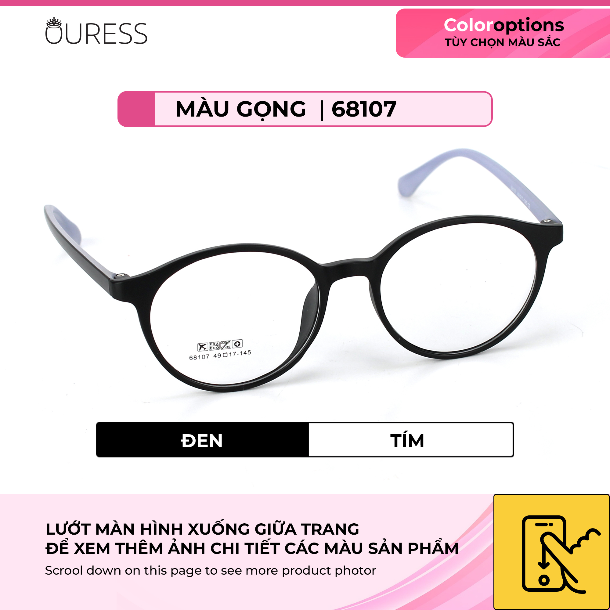 ✨Gọng kính nhựa 68107 thời trang nam nữ siêu nhẹ siêu bền OURESS