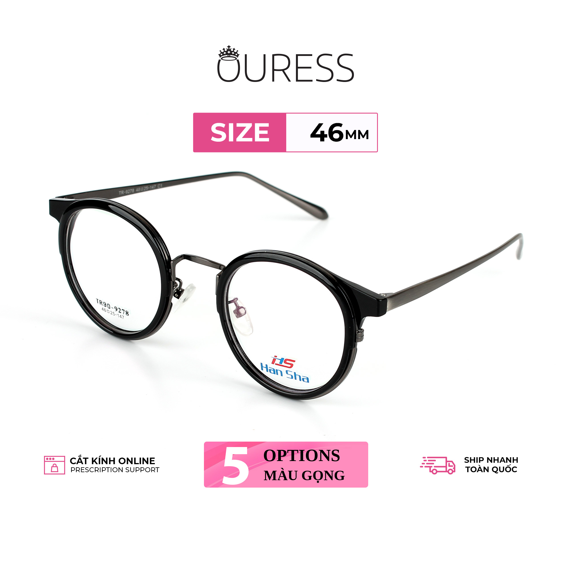 ✨Gọng kính nhựa phối càng hợp kim siêu nhẹ siêu bền hợp thời trang Ouress 9278
