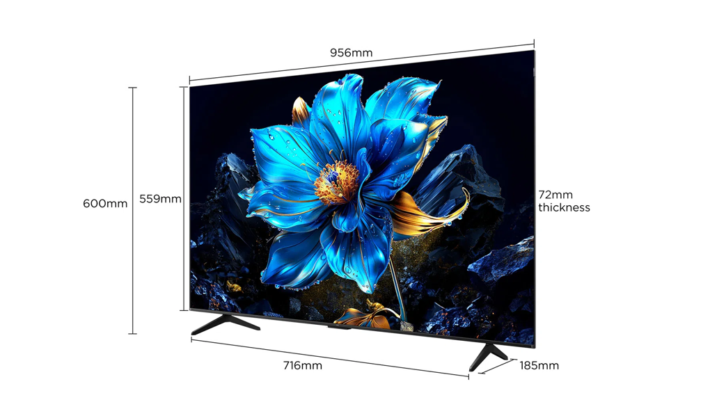 Với kích thước 43 inch, tivi phù hợp cho phòng khách, phòng ngủ hoặc không gian giải trí vừa và nhỏ. Việc chế tác từ chất liệu cao cấp không chỉ giúp tăng độ bền mà còn tạo điểm nhấn hiện đại, giúp TCL 43P7K trở thành tâm điểm thẩm mỹ trong ngôi nhà của bạn.