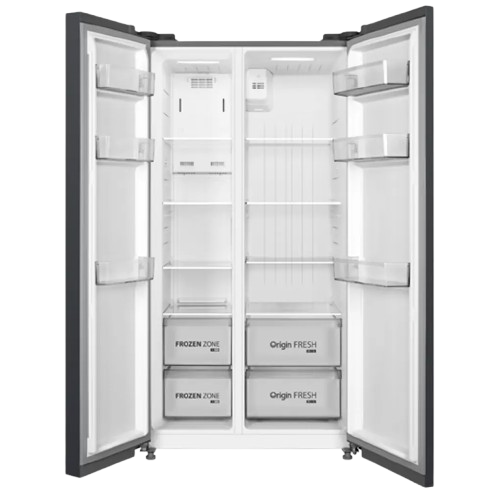 THÔNG TIN SẢN PHẨM - Kiểu tủ:Tủ lớn - Side by Side - 2 cánh - Dung tích sử dụng:519 lít - 4 - 5 người - Dung tích tổng:Hãng không công bố - Dung tích ngăn đá:185 lít - Dung tích ngăn lạnh:334 lít - Chất liệu cửa tủ lạnh:Mặt gương mờ - Chất liệu khay ngăn lạnh:Kính cường lực - Chất liệu ống dẫn gas, dàn lạnh:Ống dẫn gas bằng Đồng - Lá tản nhiệt bằng Nhôm - Năm ra mắt:2023 - Sản xuất tại:Trung Quốc Mức tiêu thụ điện năng - Công suất tiêu thụ công bố theo TCVN:520 kWh/năm - Công nghệ tiết kiệm điện:Inverter Công nghệ bảo quản và làm lạnh - Công nghệ làm lạnh:Luồng khí lạnh đa chiều Multi Air FlowCông nghệ 2 dàn lạnh độc lậpCông nghệ làm lạnh No Frost - Công nghệ bảo quản thực phẩm:Ngăn Moisture Fresh Crisper cân bằng độ ẩm - Công nghệ kháng khuẩn, khử mùi:Bộ lọc Anti Bacteria·Purify diệt khuẩn, khử mùi Tiện ích -