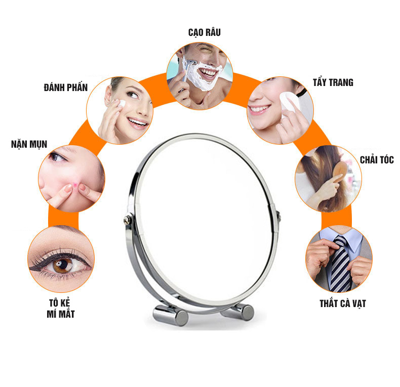 Gương trang điểm phóng đại 3 lần, xoay 360 độ, 2 mặt siêu nét, để bàn, Thép không gỉ, Size 18cm, 20cm, Minh House G31 Mô tả: Rất là khó chịu khi trang điểm, tỉa
