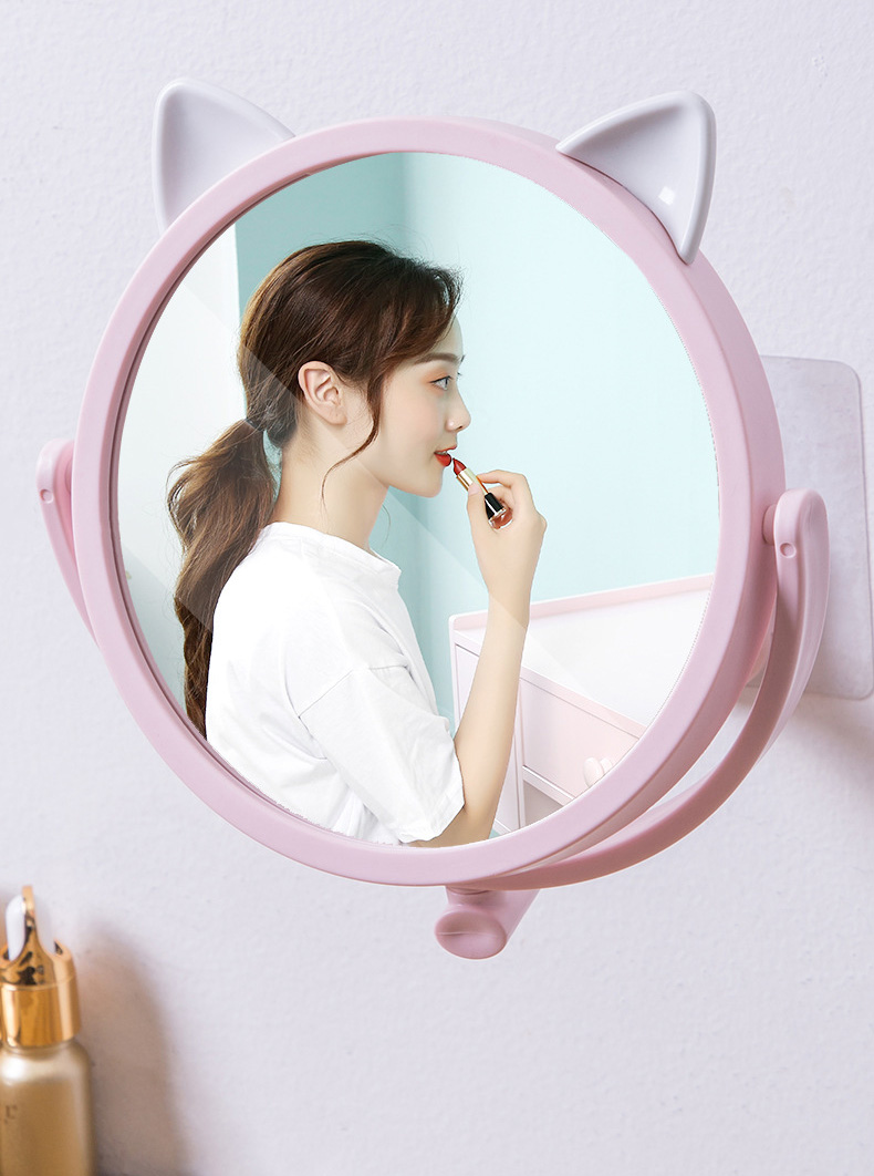 Gương Tròn Tai Mèo Xoay 360 Độ Có Giá Treo Tường Tiện Lợi - 10870